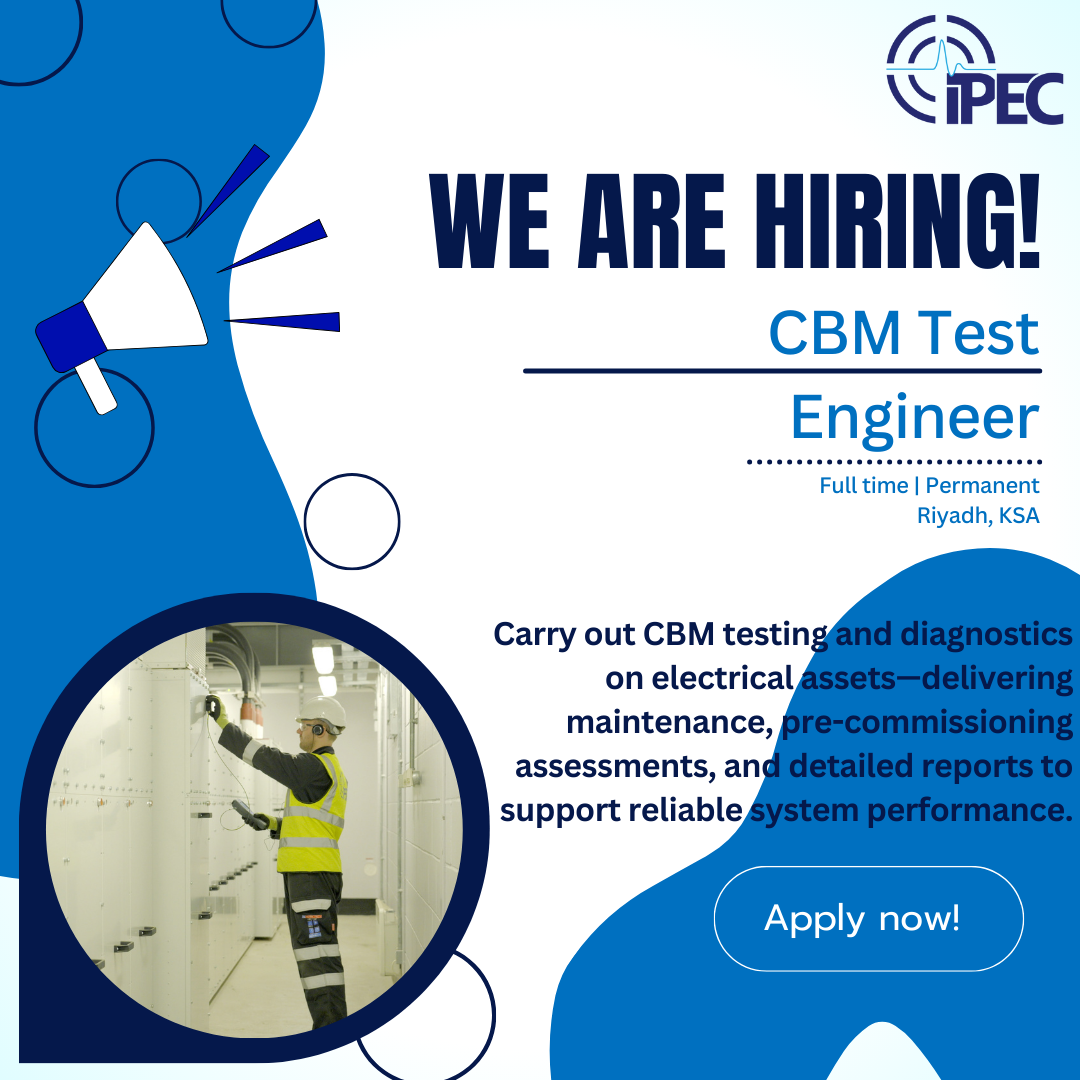 IPEC are looking for a capable CBM Testing Engineer to perform annual maintenance testing, diagnostic assessment, and pre-commissioning testing of electrical assets.